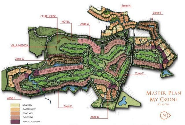 My Ozone Golf Club is a residential 18-hole course that gives golfers at all levels a fun day out. The location is isolated and halfway between Khao Yai National Park and the main highway running between Bangkok and Korat. A short length with no long carries and only two par-5’s and five par-3’s works well for those looking for resort golf. Hole routing weaves in and out of residential areas making golf carts a must.