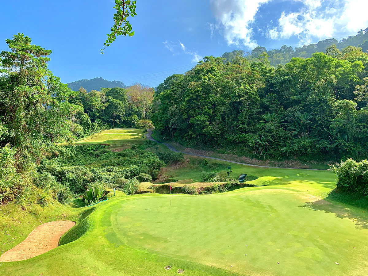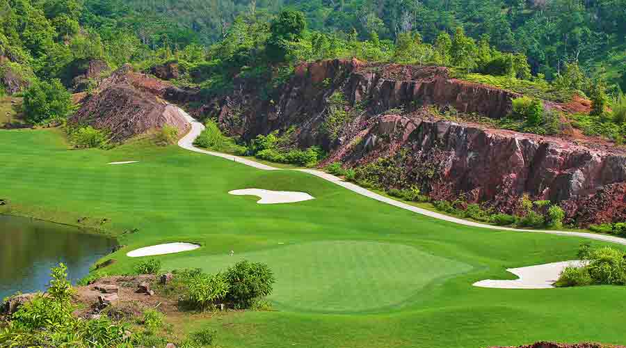 Golf at Katathong Golf Resort & Spa (mountainous course and scenic vistas in Phang Nha).